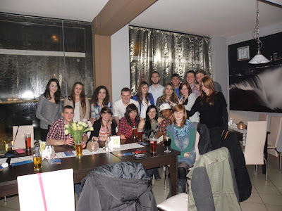 Na sobotę zaplanowaliśmy spotkanie klasowe naszej byłej 3F, jako że sporo osób nie było miejscowych w naszej klasie, to jeszcze bardziej zależało nam na jakichkolwiek spotkaniach, niestety kilku z nich nie mogła dotrzeć np kolega z Suszu/Susza? ;p czy z Kołobrzegu. Spotkaliśmy się w pizzerii. Najpierw z Dawidem pojechaliśmy do Reginy, bo czekaliśmy na Łucziego, jako że opóźniał mu się pociąg 140minut - nie chcieliśmy pójść bez niego, bo miał mieć torby i miał rozpakować się u Reginy bo u niej spał. W ostateczności, zadzwoniłam po Klapcię z Alim i czekaliśmy już w większym gronie ;p Na spotkanie wyszliśmy chwilę po 20, ale trzeba było jeszcze wkroczyć do sklepu po małe co nieco ;p Fajnie było zobaczyć te wszystkie twarze ;p sporo osób nie było, ale jak na naszą 31-osobową klasę i tak było nas dużo ;-) Każdy pytał o studia, miłość i pracę ;p dużo się pozmieniało u niektórych, wydorośleli ;p z Dawidem spaliśmy u Klapy, a jako że byliśmy umówieni z jej rodzicami, to poszliśmy 22.30 do domu, kontynuować imprezę, która zamieniła się na imprezę "rodzinną" ;p jakieś 2h później doszli do nas Regina, Łuczi i Ława i tak posiedzieliśmy sobie praktycznie do rana ;p A następnego dnia trzeba było wracać do domu ;-)
